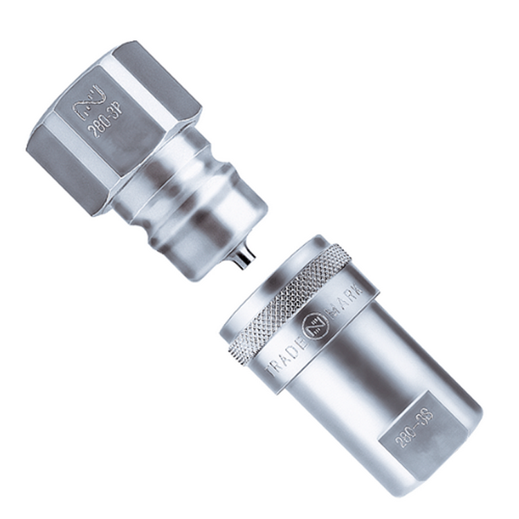 ●套筒與插塞均內置自動開關閥門,可防止分離時流體的流出。操作也很簡易。